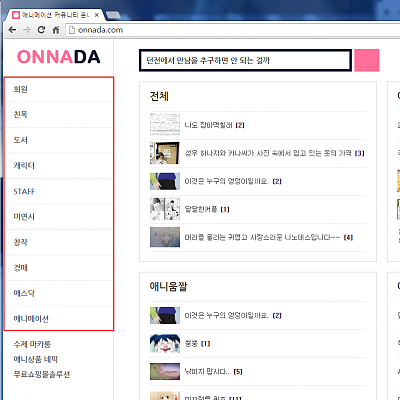 온나다 메뉴순서를 변경할 수 있습니다.
